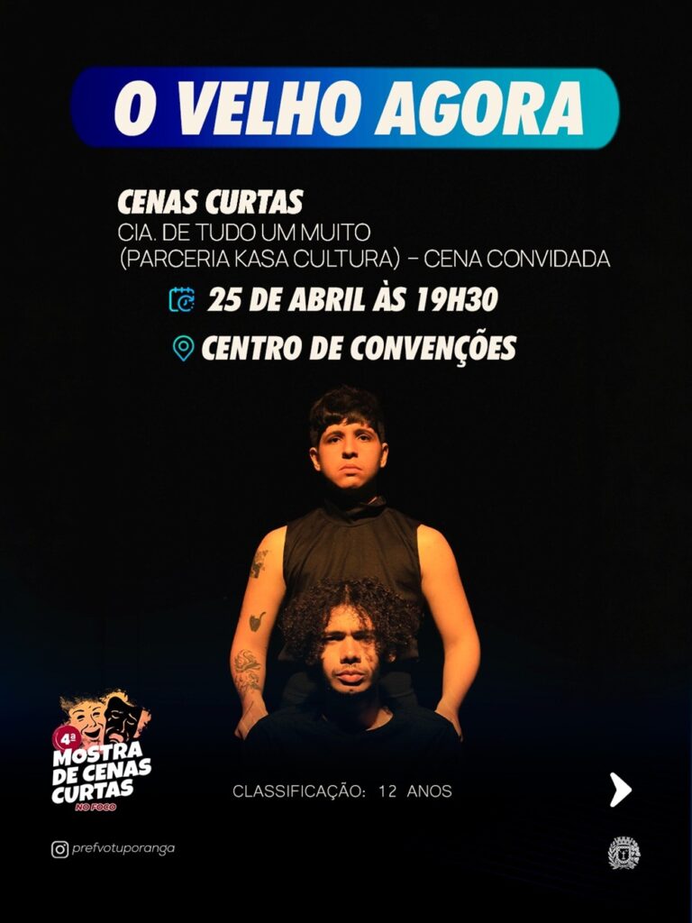 Ainda na mesma noite, a cena convidada “O Velho Agora”, da Cia de Tudo Um Muito em parceria com o Kasa Cultura propõe um embate direto entre gerações, tensionando a ideia de progresso.
