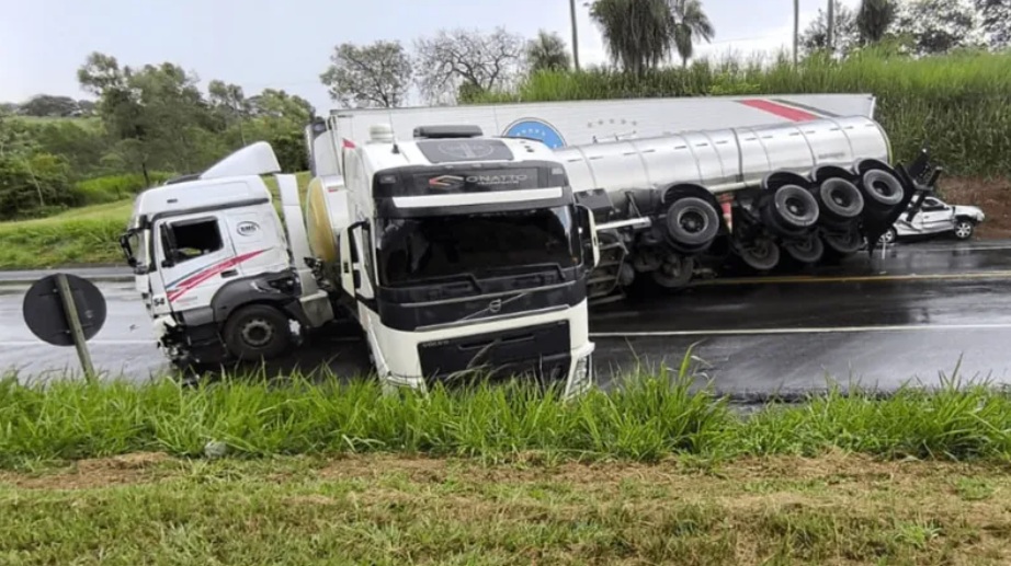 Um acidente entre duas carretas e dois automóveis causou a interdição da Rodovia Transbrasiliana (BR-153) em Nova Granada/SP, na tarde desta quinta-feira (26.mar).