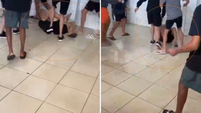 Um adolescente de 15 anos foi agredido por outros alunos dentro de uma escola estadual em Tanabi/SP. Um vídeo, que viralizou nas redes sociais, mostra a vítima caída no chão e levando vários chutes de ao menos seis estudantes.