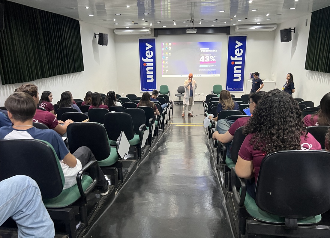 Na manhã de ontem (29.set), os alunos das terceiras séries do Ensino Médio do Colégio Unifev estiveram no Câmpus Centro da Instituição. Durante a visita, tiveram a oportunidade de explorar o local e conversar com os coordenadores e professores dos cursos de graduação, esclarecendo dúvidas sobre as particularidades de cada profissão.