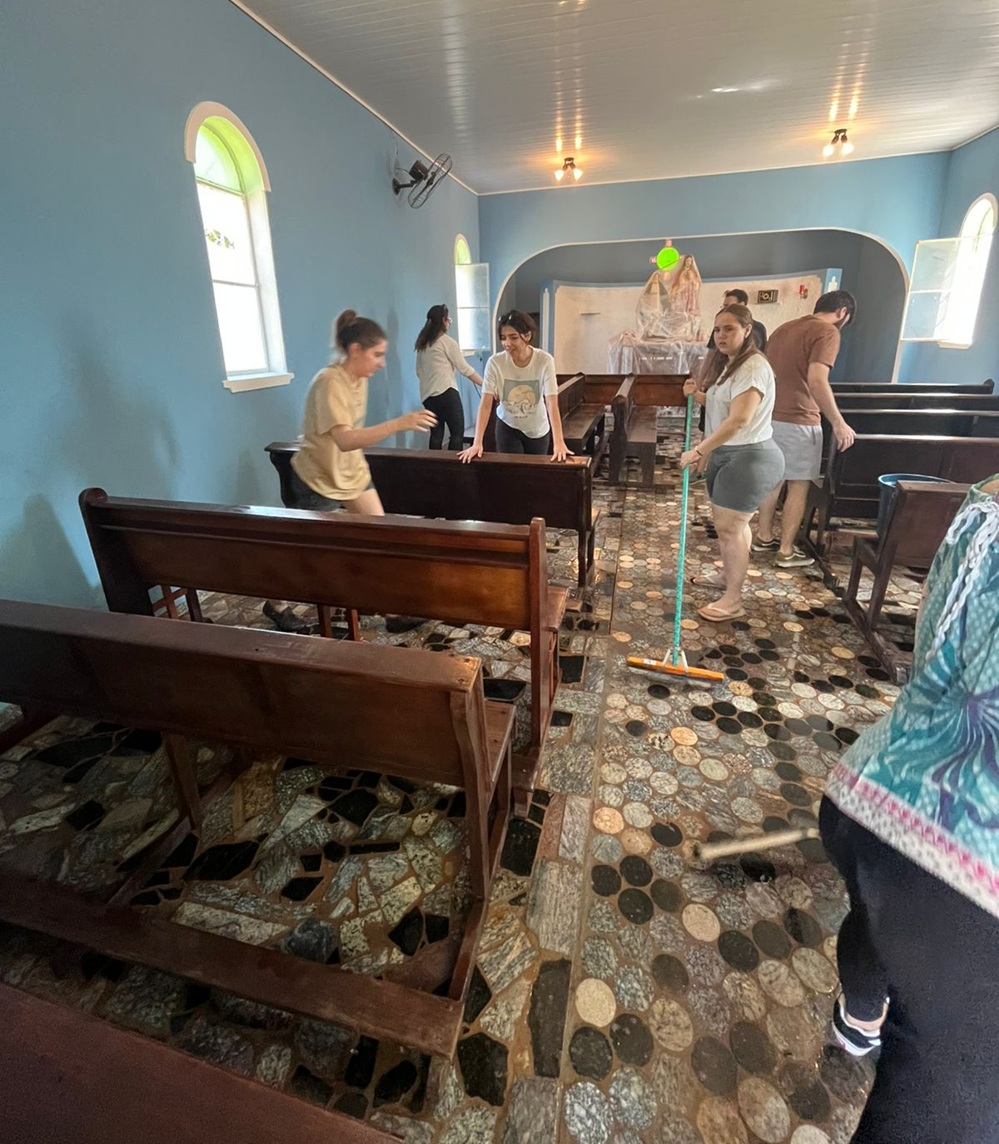 As atividades do projeto ocorreram aos sábados dos meses de setembro e outubro, na própria capela, e envolveram reparos estruturais simples, lixamento e preparo das superfícies e pintura geral do espaço, respeitando as características originais do templo. Todo o processo foi acompanhado por profissionais do setor de Engenharia da Unifev, garantindo segurança e qualidade técnica nas etapas de execução.