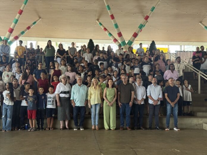 Para celebrar o momento, alunos do quarto ano da rede municipal, junto a seus diretores e professores marcaram presença em peso para acompanhar o evento. Para marcar o momento os alunos do CEM “Prof. Geyner Rodrigues” fizeram uma apresentação no palco, interpretando a música do programa Fast Heróis, sob direção da professora Ana Carolina Antoneli Miler.