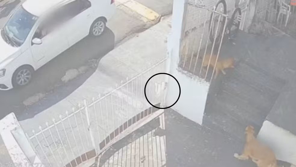 A ação foi registrada pela câmera de segurança do imóvel em Jales/SP. Uma das cachorras morreu.
