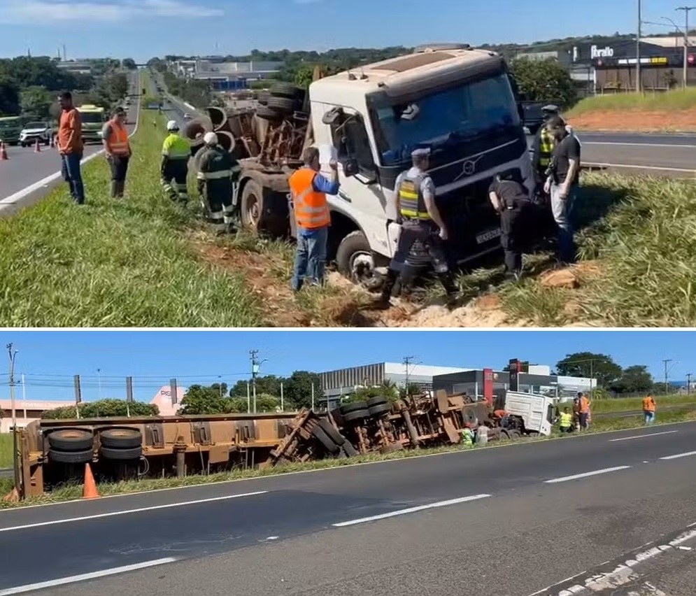 Segundo a Polícia Militar Rodoviária, o acidente aconteceu por volta das 4h, no sentido norte da pista. O motorista relatou que perdeu o controle da direção após uma possível falha mecânica. O veículo atravessou o canteiro central e tombou. Apesar do impacto, ninguém ficou ferido.