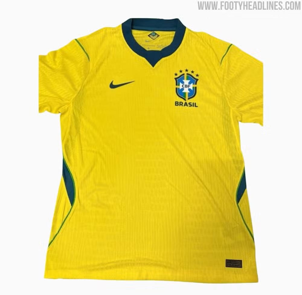 O principal uniforme que a seleção brasileira utilizará na Copa do Mundo de 2026 teve imagens vazadas pelo site “FootyHeadlines”. O veículo especializado publicou na última quarta-feira fotos da camisa que será a primeira opção para o Brasil no ano que vem: ela é praticamente toda amarela, com detalhes em verde.