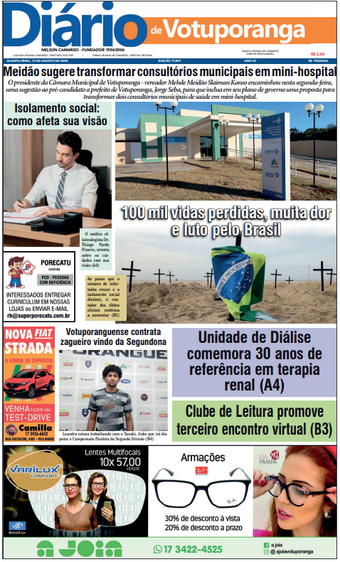 Capa da edição do dia 13 de agosto de 2020.