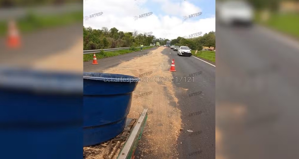Segundo a Agência Reguladora de Transportes do Estado de São Paulo (Artesp), uma das faixas está interditada, o que causou um congestionamento de cerca de três quilômetros.