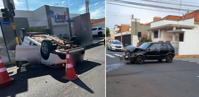 Mais um acidente de trânsito foi registrado na área central de Votuporanga/SP. Desta vez, na manhã desta quinta-feira (11.dez), um veículo chegou a capotar após ser atingido por outro no cruzamento das ruas Pernambuco com a Rio de Janeiro.