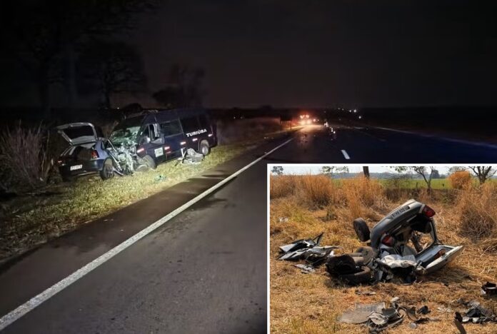 Um casal morreu ao bater o carro de frente contra uma van que transportava pelo menos 11 estudantes na madrugada desta terça-feira (7.out), na Rodovia Deputado Roberto Rolemberg (SP-461), em Buritama/SP.