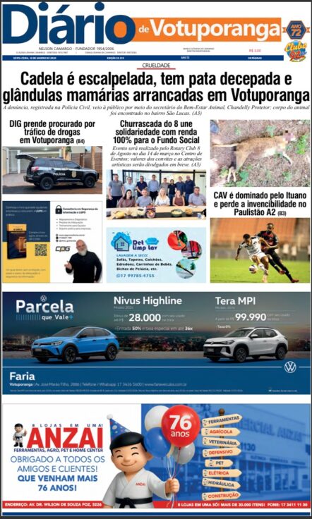 Faleceu, nesta segunda-feira (30.dez), às 9h40, na Santa Casa de Votuporanga o Sr. Jurandir Paggioro. Ele deixou a esposa Mirian Mello Paggioro e os...