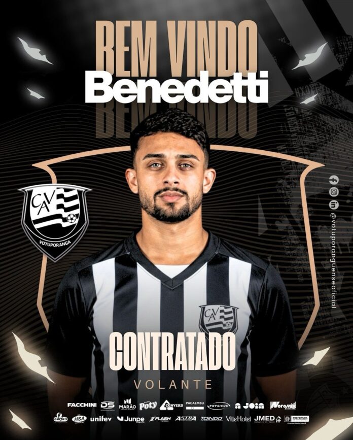 O Clube Atlético Votuporanguense anunciou nesta quarta-feira (15.out) a chegada de Felipe da Silva Benedetti, conhecido como Benedetti, para a disputa do Paulistão Sicredi A2 2026. O volante de 24 anos, 1,75m de altura e destro, chega para reforçar o setor de meio-campo da Pantera Alvinegra, trazendo equilíbrio, qualidade técnica e intensidade ao time.
