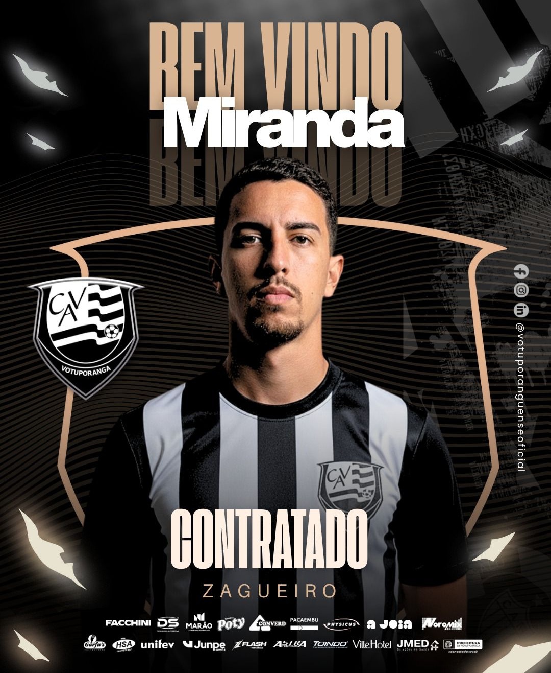 Com 23 anos, 1,90m de altura e pé destro dominante, Miranda chega para fortalecer o sistema defensivo do CAV com imposição física, boa leitura de jogo e segurança nas bolas aéreas.