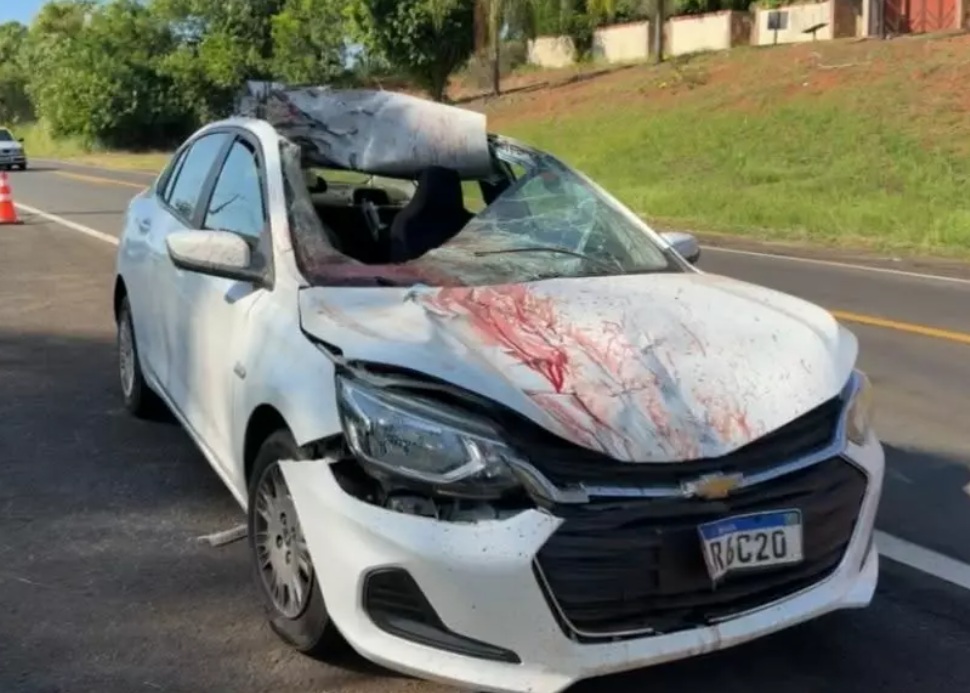 O acidente foi registrado neste sábado (25), na Rodovia Alfredo Jorge Abdo, no sentido Pindorama–Catanduva. Animal morreu no local.