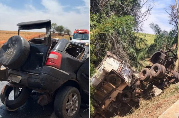 Segundo a Polícia Rodoviária, o casal que estava em um dos veículos tentou realizar uma ultrapassagem e acabou colidindo com outro carro. Com o impacto, o segundo veículo atingiu um caminhão, que caiu em um barranco às margens da rodovia.