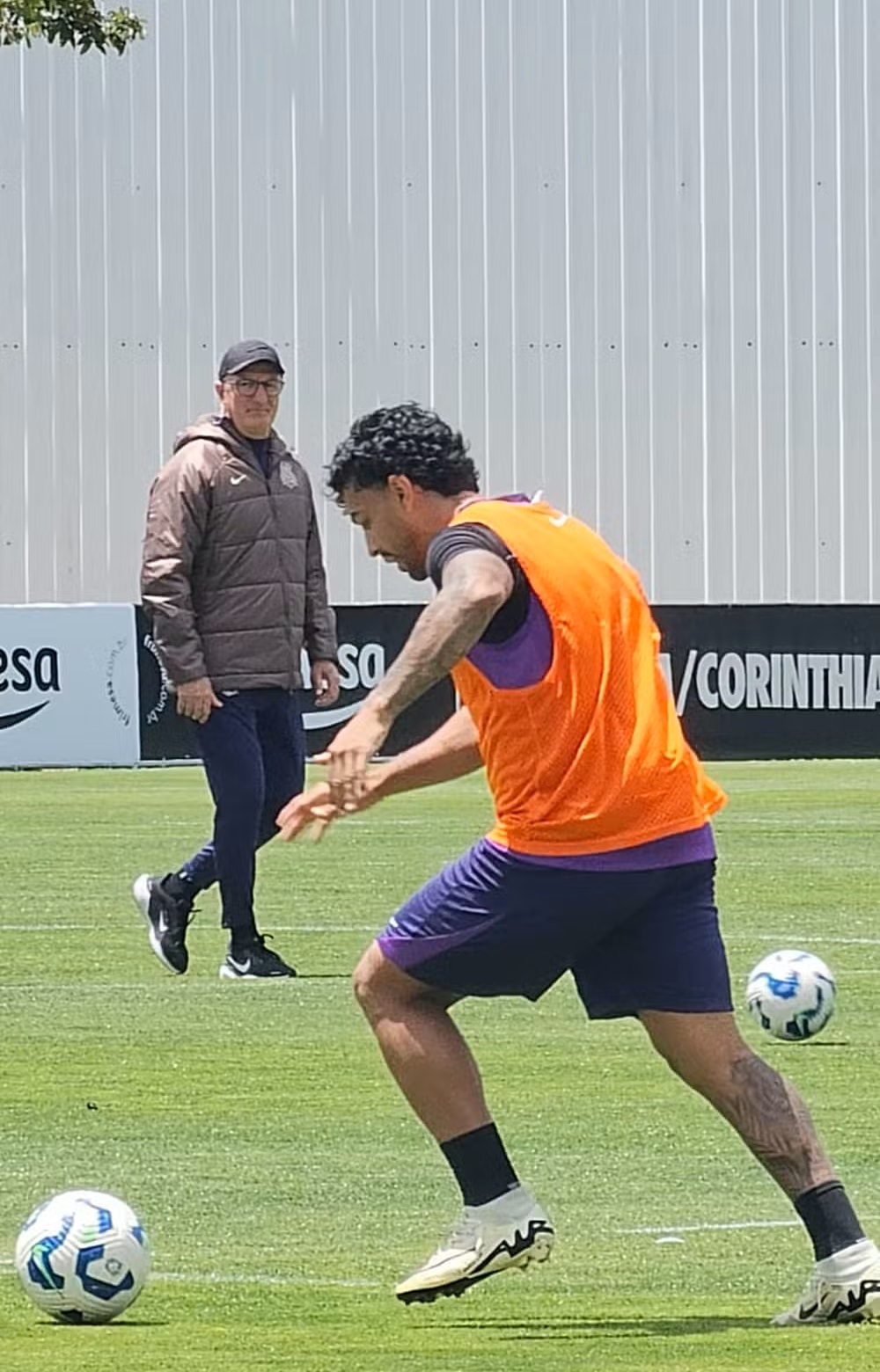 Já o volante André, recém-promovido das categorias de base, ficou fora do treino, em razão de uma lesão ligamentar no tornozelo direito. O atacante Vitinho, que passou por cirurgia para correção de lesão no menisco medial do joelho direito, é outra ausência.