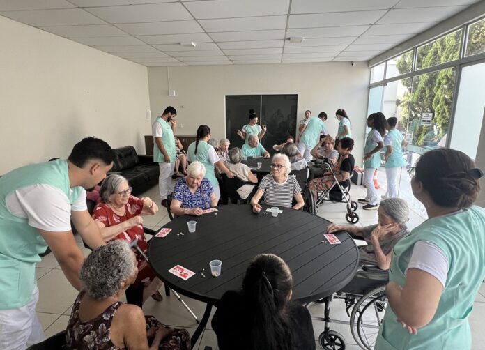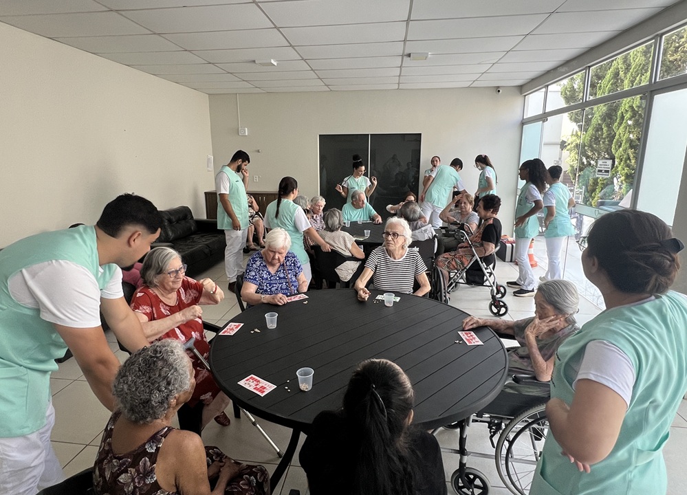 Para celebrar o dia, os alunos do sexto período de Fisioterapia da Unifev estiveram no Residencial Sênior Amor à Vida na última segunda-feira (29/9). A tarde foi dedicada à promoção de atividades de socialização, motoras e cognitivas, incluindo bingo, dança, dominó, jogo da memória e circuitos proprioceptivos. Os estudantes foram acompanhados pela coordenadora da graduação, Profa. Ma. Ana Paula Pelosi, e pela Profa. Ma. Fernanda Menezes de Siqueira Santana Alves, responsável pelo estágio supervisionado em geriatria.