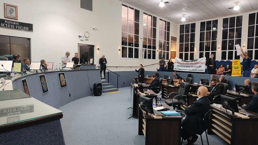 A 6ª sessão ordinária da Câmara Municipal de Votuporanga/SP, desta segunda-feira (2.mar), foi marcada pelos ‘tradicionais’ protestos contra o aumento nas contas de água e vazamentos de esgoto; além disso, um grupo de servidores públicos municipais, em grande parte ocupantes de cargos de confiança, marcaram presença no Plenário ‘Dr. Octavio Viscardi’ para protestar contra a fala do vereador Cabo Renato Abdala (PRD), que nas últimas sessões abordou supostas irregularidades no Parque da Cultura, afirmando que o local é “terra de malandro.”
