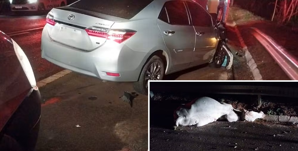 Segundo o Corpo de Bombeiros, por volta das 22h30, o animal estava no meio da pista, e o motorista não conseguiu frear a tempo.