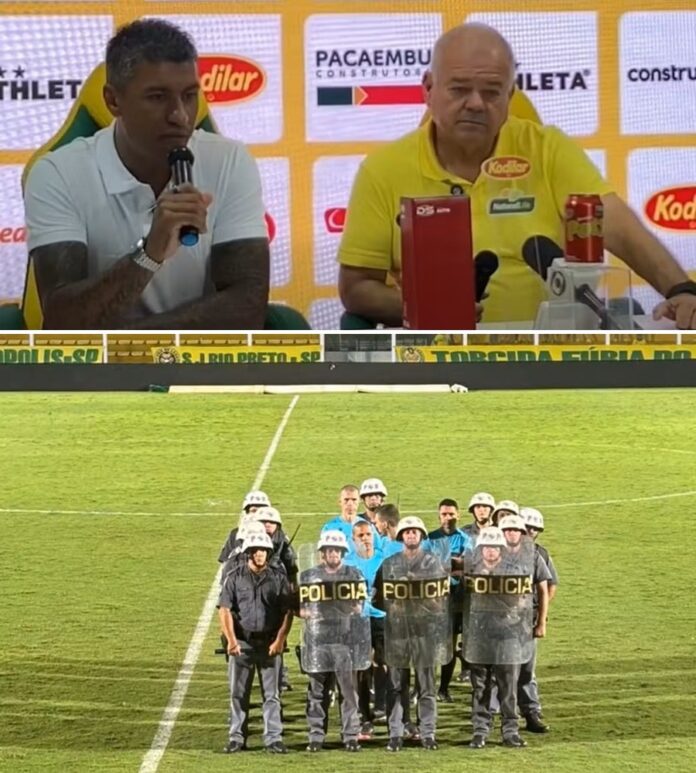 “É com muita tristeza que eu e Paulinho estamos aqui agora. Tem uma matéria do ge sobre o quanto o Mirassol tem sido prejudicado pelo VAR. Em momento algum, a diretoria está sendo omissa. Após o jogo contra o Botafogo, estive na CBF em uma reunião de três horas. O Paulinho participa de todas as reuniões pós-jogo para questionar os problemas de arbitragem.”