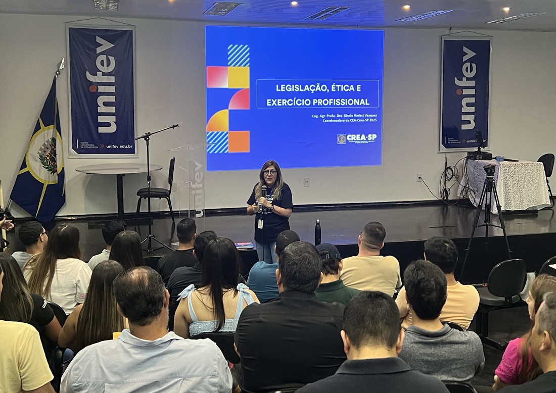 A coordenadora da graduação de Agronomia da Unifev, Profa. Ma. Mariane Barbará, explicou que a atividade, fruto de uma parceria com o CREA-SP, complementa a formação acadêmica e é obrigatória para que os formandos obtenham o registro profissional junto ao conselho de classe. “O conteúdo é um compilado dos cinco anos de estudo e promove uma importante retomada das atribuições e responsabilidades que o futuro profissional da área tem perante a sociedade e a própria profissão, no momento em que ingressar no mercado de trabalho”, completou.