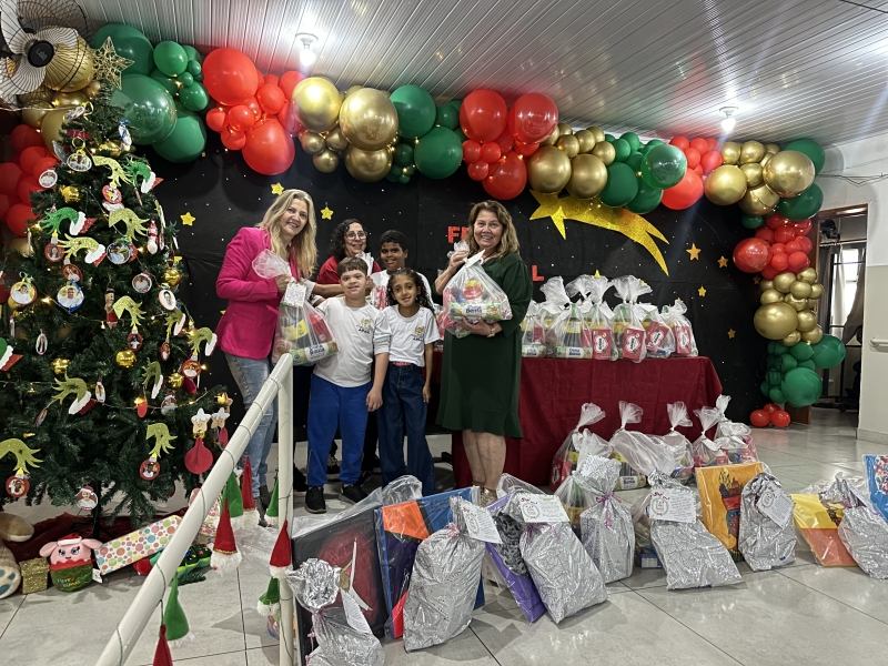 Os kits foram compostos por itens típicos do período natalino, como biscoito, caixa de bombom, macarrão, massa de tomate, refrigerante, goiabada e o tradicional panetone, contribuindo para tornar o Natal mais especial para famílias em situação de vulnerabilidade social.
