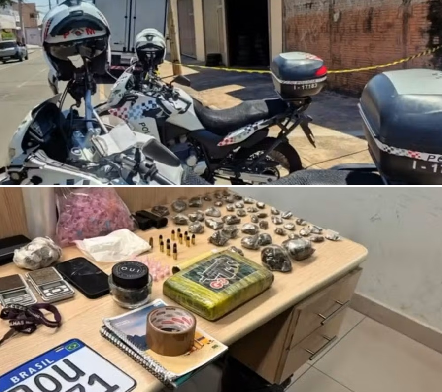 O suspeito fugiu, mas foi localizado em seguida. Com ele, a polícia encontrou celulares, porções de drogas, materiais para embalar os entorpecentes e uma pistola de nove milímetros com 13 munições.