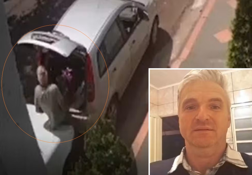 No vídeo, registrado por câmera de segurança, é possível ver José Eduardo Botini guardando o vaso de flores no porta-malas do carro dele. Repentinamente, o outro veículo surge, o prensa e o arrasta.