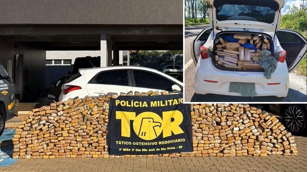 Mais de 600 tabletes de maconha foram encontrados por policiais rodoviários no porta-malas e banco traseiro de carro, interceptado após fuga na Rodovia Feliciano Sales da Cunha (SP-310). Droga é avaliada em mais de R$ 1,3 milhão.