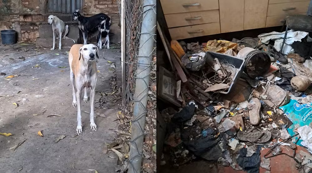 No endereço, foram encontrados 17 cães em situação de maus-tratos. Conforme o registro policial, alguns animais estavam doentes e aparentavam ter leishmaniose. O local apresentava condições precárias de higiene.