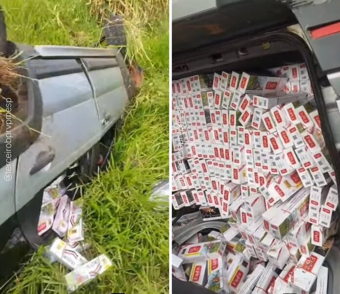 Contudo, o motorista desobedeceu à ordem de parada, dando início a um breve acompanhamento. Já na altura do km 446, o condutor perdeu o controle do veículo e capotou às margens da rodovia. Durante a vistoria, os policiais localizaram uma grande carga de cigarros contrabandeados do Paraguai. Ao todo, foram apreendidos 15.380 maços de cigarros, com valor estimado em R$ 77 mil.