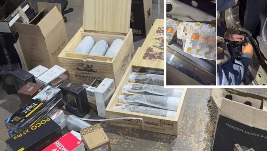 No porta-malas, a PRF localizou algumas mercadorias aparentemente regulares, como telefones, um notebook, alguns tablets e 48 garrafas de vinho. Ao serem questionados, os homens demonstraram nervosismo. Diante disso, os policiais levaram o veículo à base da PRF, onde fizeram uma vistoria minuciosa e encontraram os produtos considerados ilegais.
