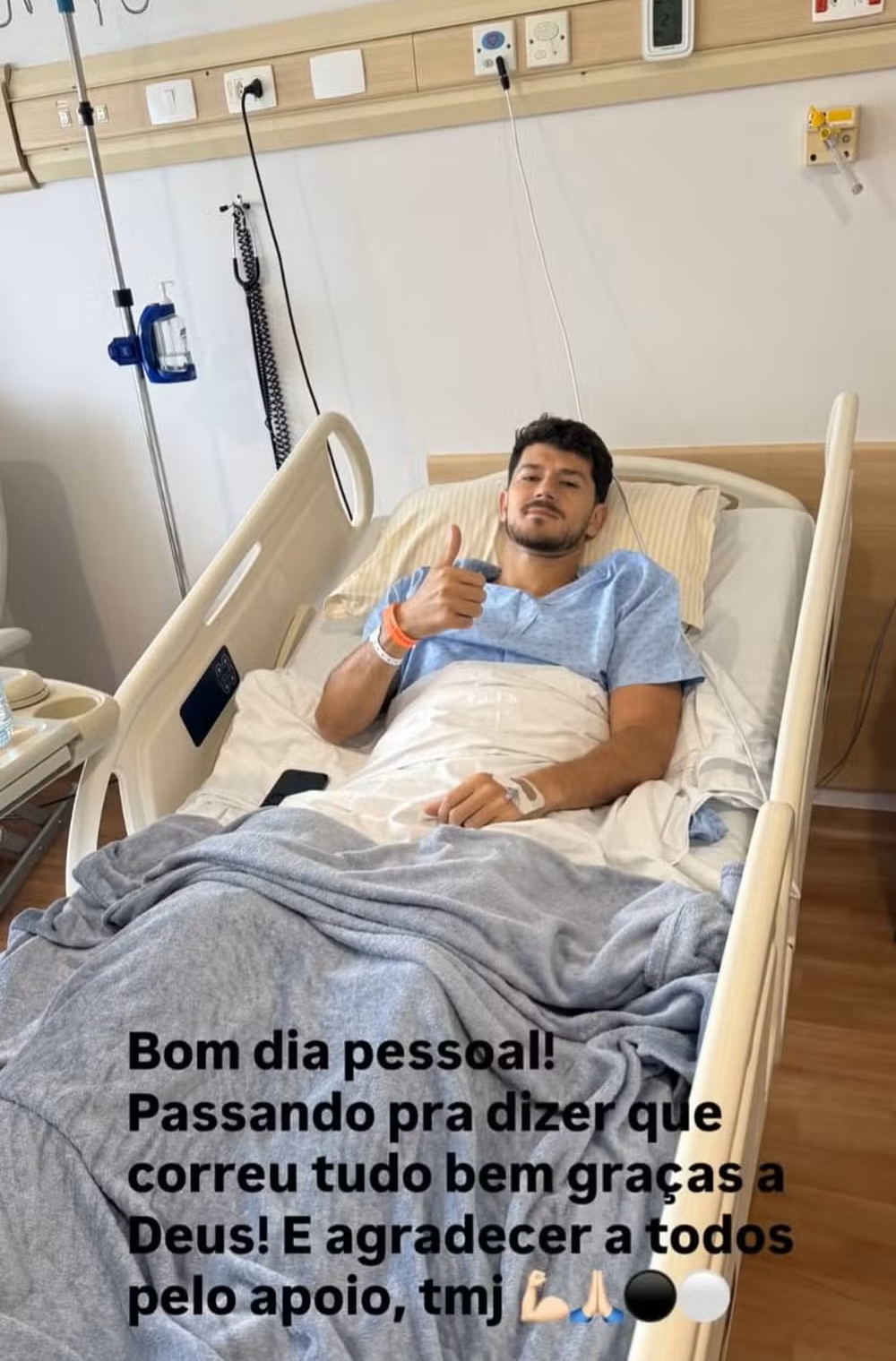 “Passando para dizer que correu tudo bem, graças a Deus! Agradecer a todos pelo apoio, tamo junto”, escreveu o atleta do Corinthians.
