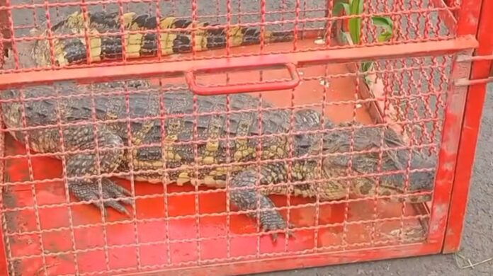 Um jacaré foi resgatado nesta sexta-feira (31.out) no quintal da Unidade Básica de Saúde (UBS) do bairro Laranjeiras, em Castilho/SP.