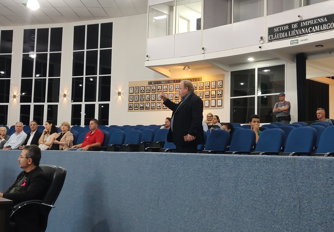Durante o tempo de fala do vereador Cabo Renato Abdala (PRD), Liberato Rocha Caldeira, que já havia distribuído um ofício sobre o assunto nas mesas dos parlamentares, antes do início dos trabalhos, aproveitou para protestar.
