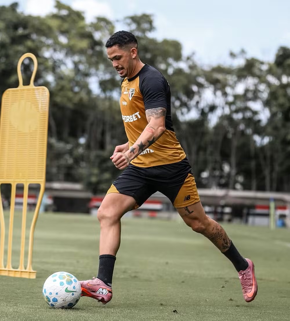 O atleta está inscrito e pode reforçar a equipe no próximo jogo. Após o aquecimento, Crespo dividiu a atividade em dois grupos e o treinamento foi fechado para a imprensa.
