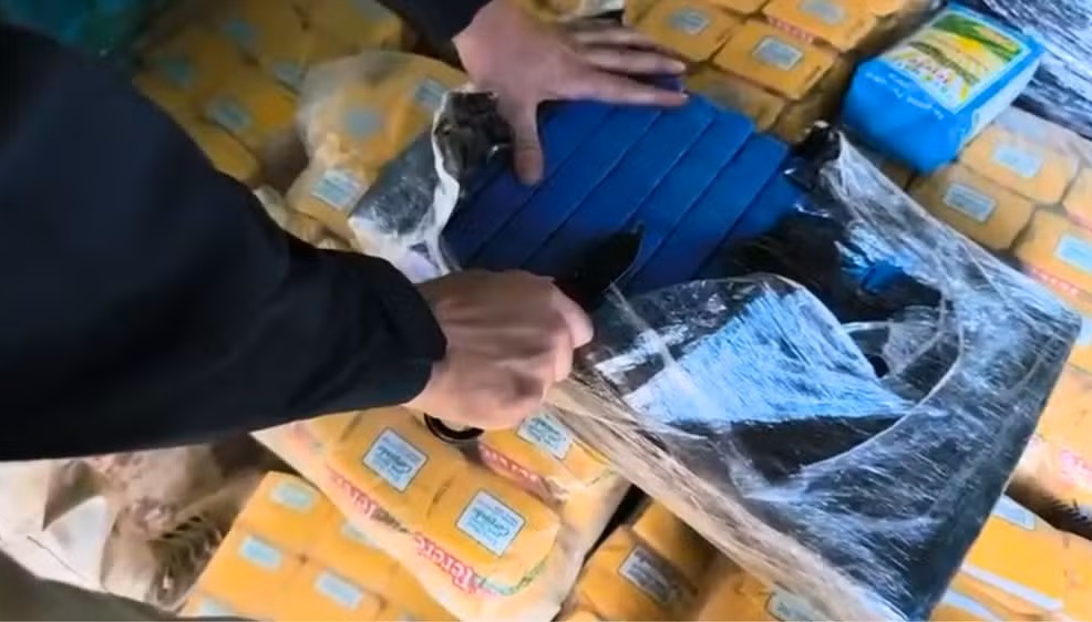 Durante a fiscalização, os agentes encontraram 2.808 tabletes de maconha escondidos sobre a carga, além de 65 buchas da droga e 19 pacotes de haxixe.
