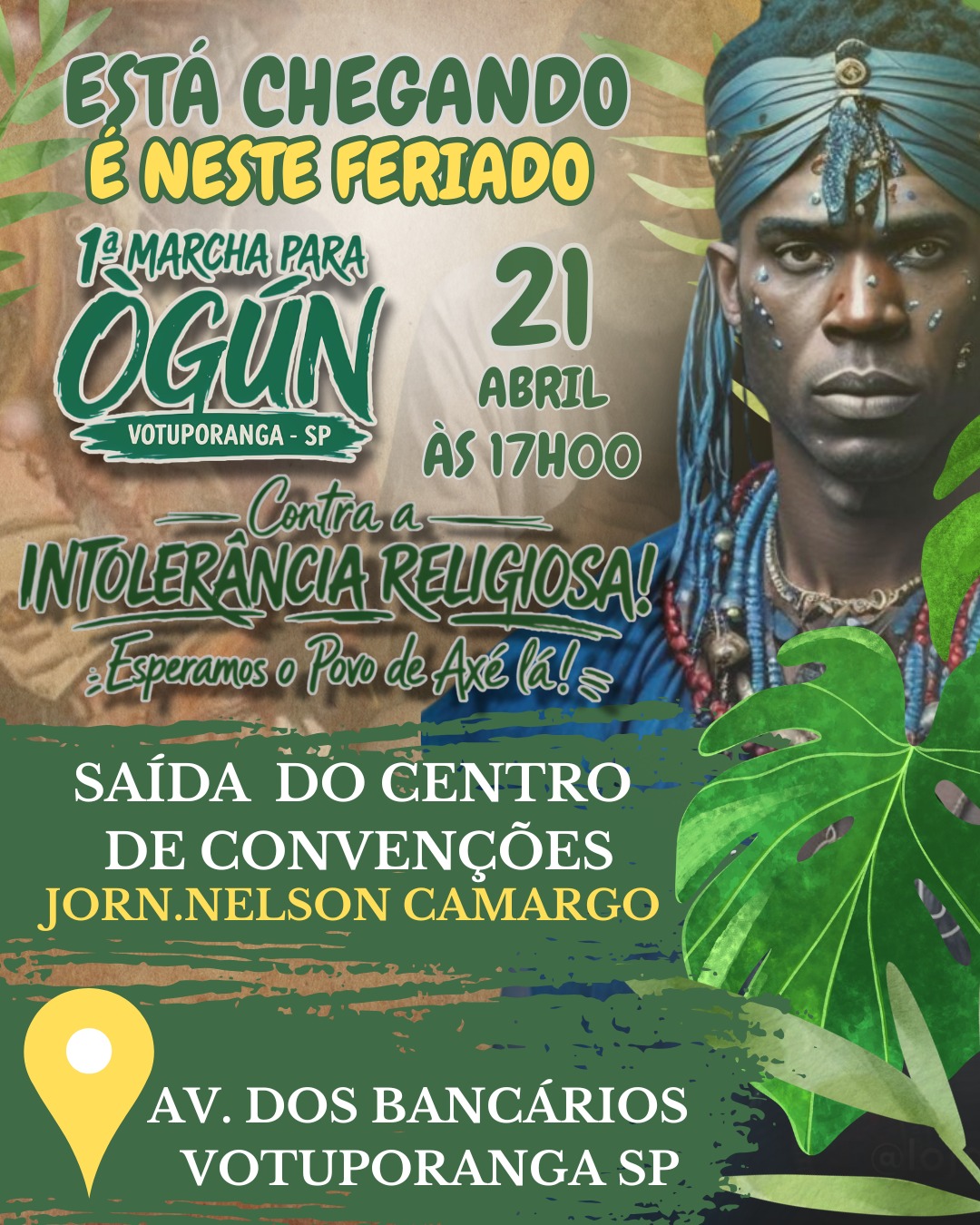 A comunidade de religiões de matriz africana realiza neste feriado, 21 de abril, às 17h, a 1ª Marcha para Ògún em Votuporanga. A concentração será no Centro de Convenções “Jornalista Nelson Camargo”.