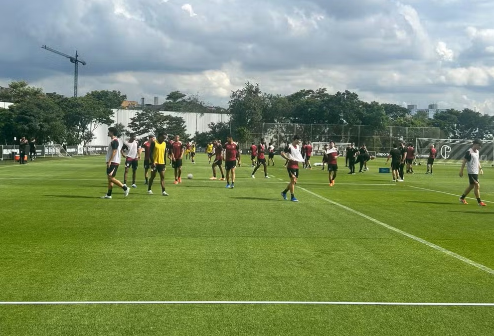Os dois permaneceram na parte interna do CT Joaquim Grava durante o aquecimento. Depois, eles apareceram em campo, mas só observaram os companheiros fazerem um exercício de posse de bola, troca de passes e pressão pós-perda.