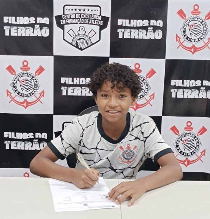 João Cardoso, de 10 anos, foi contratado para a base do Corinthians. Ele começou a jogar em uma escolinha de futebol municipal e hoje se prepara para defender um dos maiores times da capital paulista.