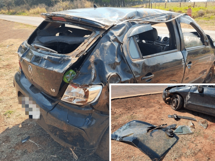 Uma motorista ficou ferida após um capotamento na Rodovia Péricles Bellini (SP-461), em Cardoso/SP, na manhã desta quarta-feira (15.out).