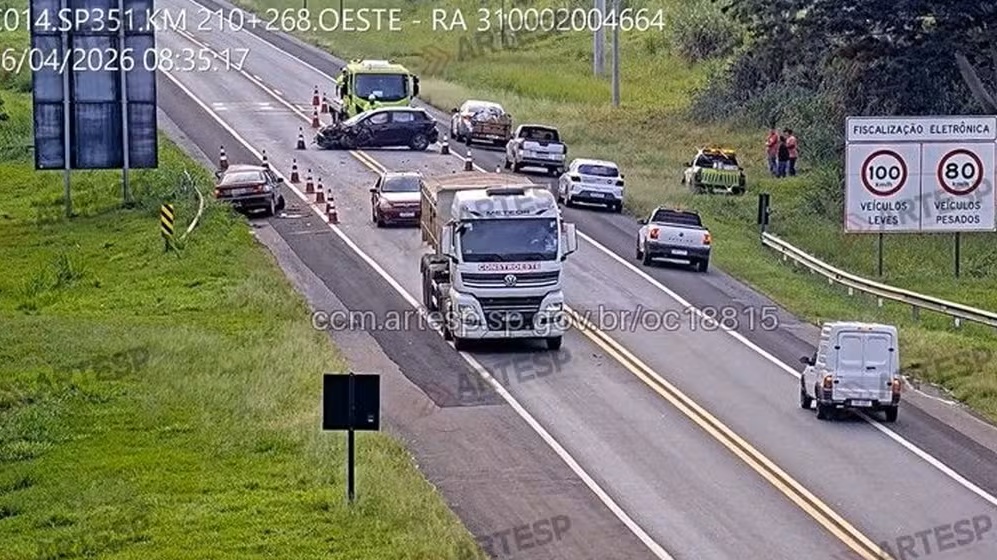 Carros se chocaram na Rodovia Comendador Pedro Monteleone (SP-351), na manhã desta segunda-feira (6). Suspeita é de que pneu de um dos veículos estourou.