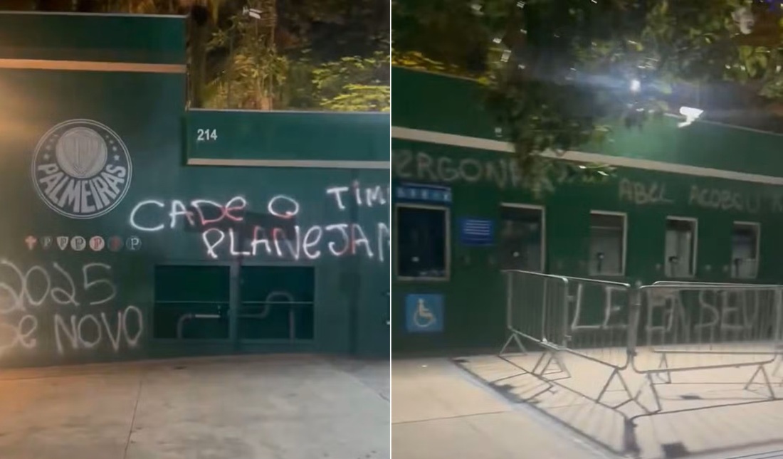 Os muros da sede social do Palmeiras e das bilheterias do Allianz Parque foram pichadas por vândalos depois da goleada por 4 a 0 sofrida para o Novorizontino, nesta terça-feira, pelo Campeonato Paulista.