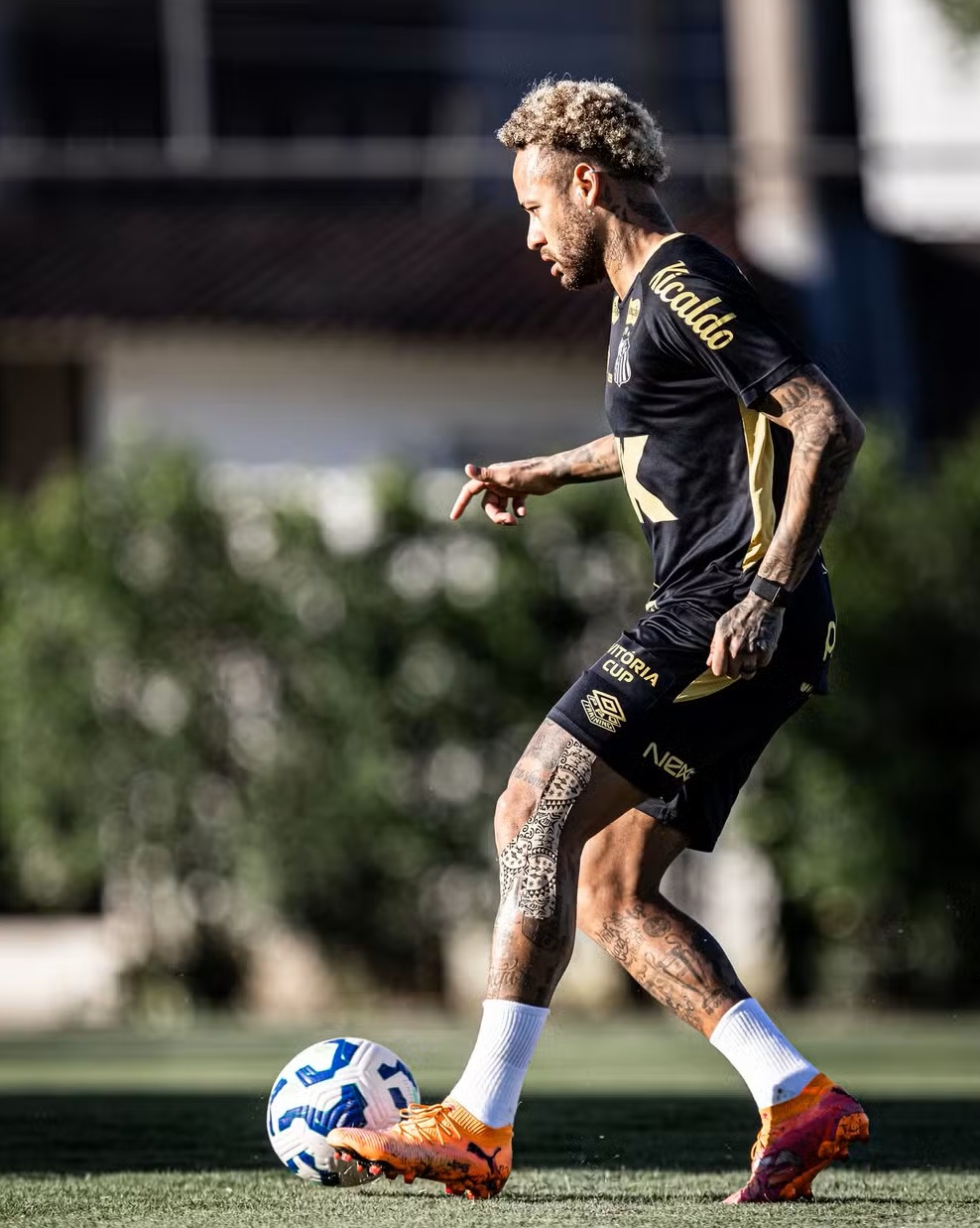 Neymar passou por testes físicos durante o treino do Santos no CT Rei Pelé na tarde desta quinta-feira. Ele foi a campo com os demais companheiros e participou, pela primeira vez na semana, de parte da atividade com o grupo. Foi feita uma avaliação sobre a condição de seu joelho esquerdo.