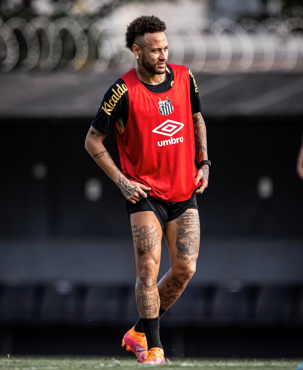 Neymar avançou na tentativa de recuperar a forma física e o ritmo de jogo após lesão: nesta terça-feira, o camisa 10 participou do treinamento completo com o grupo, no CT Rei Pelé. A melhora, porém, não significa que ele estará em campo na quinta-feira, contra o Palmeiras, no Allianz Parque.