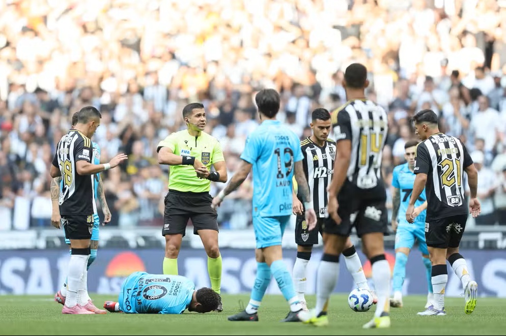 O camisa 10 recebeu atendimento em campo e continuou na partida. Não é a primeira vez que Neymar se posiciona contra os gramados sintéticos. Sua presença contra o Atlético-MG, inclusive, chegou a ser colocada como dúvida durante a semana justamente por isso.
