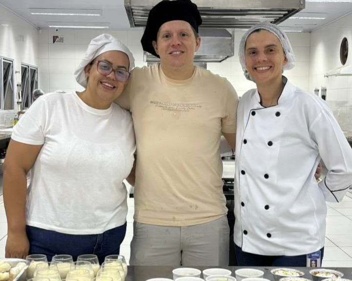 Os chefs Caio Henrique Trevizan Alves e Thamires de Castro Gomes Alves, formados na Instituição, compartilharam suas experiências profissionais com os alunos.