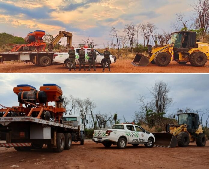 De acordo com o apurado, a equipe recebeu informações sobre o possível paradeiro do equipamento avaliado em aproximadamente R$ 400 mil. De imediato, os policiais iniciaram diligências em área de mata, identificando rastros compatíveis com o deslocamento de maquinário pesado.