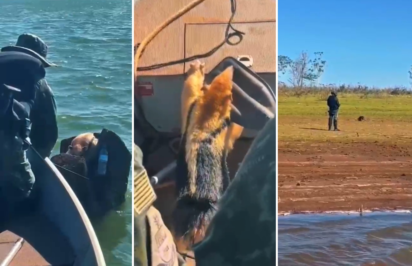 O animal que possivelmente teria tentado atravessar o rio foi encontrado em cima de um tronco de árvore, cansado e assustado. Ele foi devolvido sem lesões ao seu habitat natural.