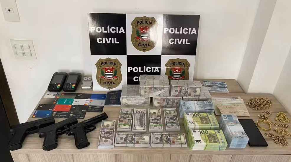 Todo o material foi apreendido. A quantidade total de dinheiro não foi divulgada.