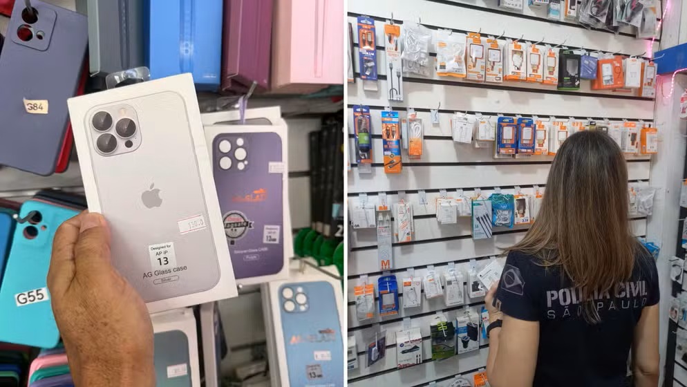 Conforme o apurado, a suspeita da polícia é que os produtos são contrabandeados do Paraguai. Os acessórios, como carregadores, cabos e itens embalados com marcas reproduzidas ilegalmente, foram apreendidos em lojas de shoppings.